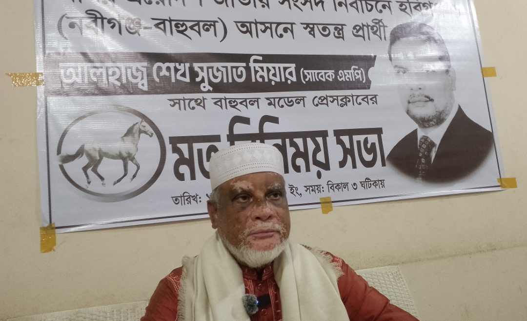 বাহুবল মডেল প্রেসক্লাবে স্বতন্ত্র প্রার্থী শেখ সুজাত মিয়ার মতবিনিময়